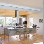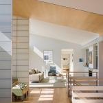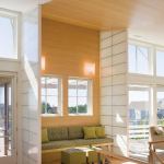 He placed the home’s most frequently used rooms on the upper level to capture ocean and meadow views. A shed roof protects the north side of the house from harsh winds, while opening up the southern and western ends for solar gain. Thermally efficient Kalwall panels on the northern exposure let in light without compromising privacy. And a two-story stairwell brings even more of the sun’s rays into the heart of the building. “The house gets great light,” one juror noted.