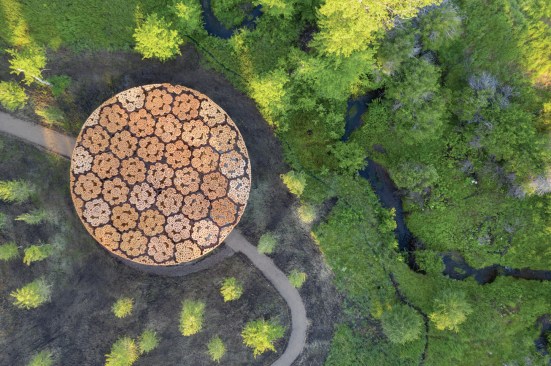 His initial design of the Gando Primary School comprised a single classroom structure under a sloped shed roof. The complex has been extended twice by Kéré, adding the barrel vaulted Gando Teachers’ Housing in 2004 and the circular Gando Primary School Library in 2019. His other projects include the Startup Lions Campus in Turkana County, Kenya (2021); Serpentine Pavilion in London (2017); and Xylem, the gathering pavilion for the Tippet Rise Art Center in Fishtail, Mont. (2019). Currently under construction is the Benin National Assembly, Porto-Novo, Republic of Benin while his design for the 127-person assembly hall for National Assembly of Burkina Faso in Ouagadougou remains unbuilt.
