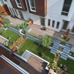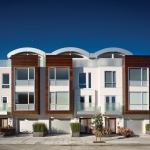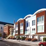 The Nove Residences challenge a stodgy San Francisco staple: the “block” apartment building with double-loaded corridors, energy-consuming elevators, and single-exposure units that require mechanical ventilation. Handel Architects’ scheme for the nine residences set three two-unit buildings along the main street and three smaller ones behind it, with a green courtyard between. Every unit has cross ventilation, a balcony, and natural light from two exposures.