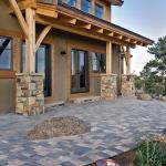 To minimize runoff and facilitate stormwater infiltration, MQ Architecture & Design chose concrete pavers for the patios and gravel for parking surfaces and walkways. Gravel swales, revegetated native grasses and flowers, and locally sourced boulder walls provide further stormwater control. Even the exterior lighting was designed to minimize the home’s environmental footprint by pointing downward to reduce light pollution.