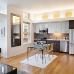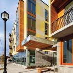 The clean, cheerful design continues inside, where all 57 units feature transom windows above interior light shelves, sliding room dividers, bamboo floors, and stainless steel Energy Star appliances. Incorporating 9,500 square feet of retail, the infill project promotes low-impact affordable housing along the light-rail line. In that spirit, it also includes a green roof, an electric car charging station, and bike parking on every floor.