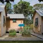 Architect James Estes divided the house into four separate buildings, each designed at the one-story scale of the neighborhood. A one-bedroom main house serves as the owner’s residence, and a two-bedroom guest house next door accommodates visiting family and friends. (The two structures are connected by a covered walkway.) An existing painting studio and a shed for bikes, boats, and kayaks complete the little shingled compound. A 110-foot-long boardwalk weaves through all four elements, tying them together while referencing the nearby Cape Cod beaches.