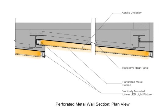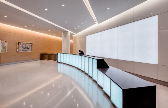 “So many lobbies and plazas are so banal and poorly lit. I like the playfulness of the illuminated wall in the back, which plays off the transparent wall of the entry. It’s very skillful and creative. The lighting is so integrated here that it’s really part of the architecture. It’s not additive by any means.” —Juror Richard Southwick, FAIA