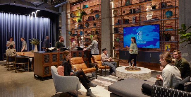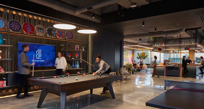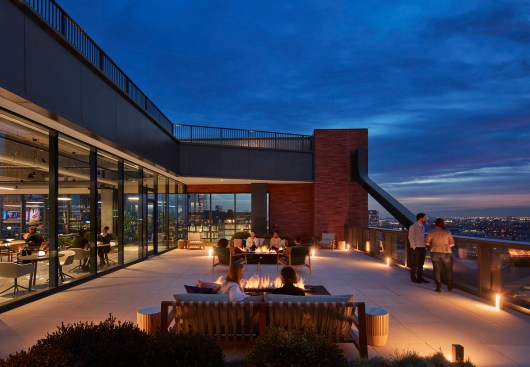 Schuler Shook lent its lighting expertise to other parts of the building, too, including the 18th floor—outfitted with a bar, a lounge, a game room, and a planter-filled terrace boasting skyline views. The firm’s plan for the terrace is especially thoughtful, with soft pathlights providing needed illumination while allowing the panoramas to be the true star of the show.