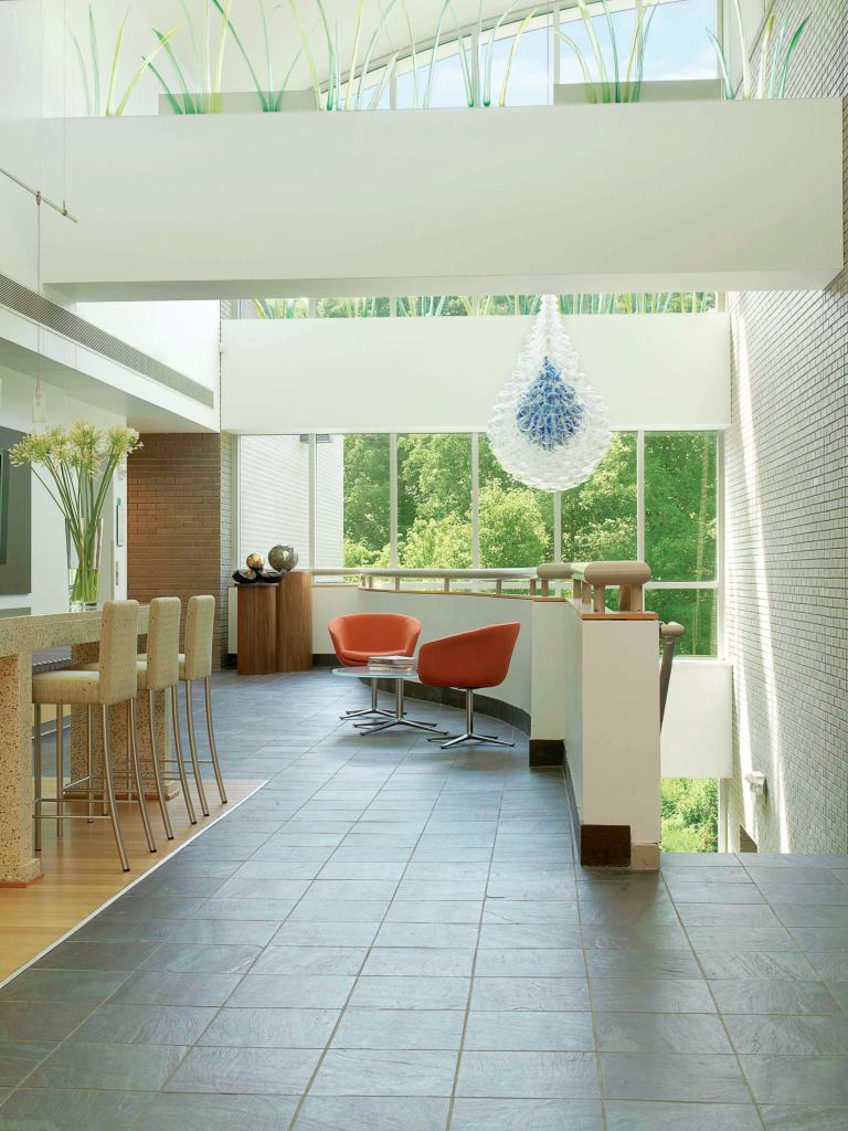 Vondruska favors the natural daylighting and views to the outdoors in the building. “I can stand anywhere in the building and have a view outside,” he says. “Now, I am more sensitive to the need for daylighting. I notice how depressing it can be when I go to visit other dark office buildings.”