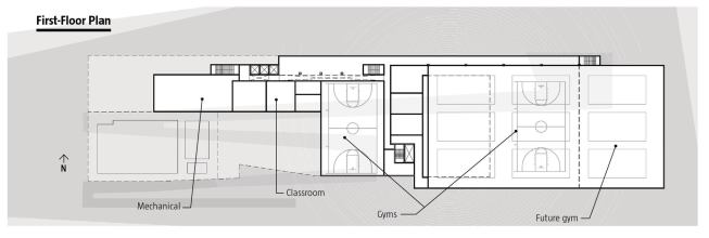 Program A community center with facilities that include gyms, a pool, a variety of fitness spaces, classrooms, offices, a lounge, and a café.