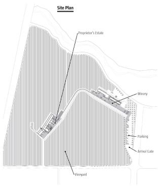 A vineyard estate that includes a residence, winery production facilities, and barrel-aging, bottling, and tasting rooms.