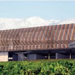 By using an existing water channel bringing runoff from the Andes as an organizational basis for the design, Field Architecture master planned the site with minimal disruption to the existing vines. Roadways and utilities—as well as two buildings, a winery and a residence—are sited along this channel to fit within the harvesting and production system of the pre-existing vineyard, and the channel provides ready access to water for production and irrigation without the need for additional infrastructure. The concrete winery building is formed by two attached sloping volumes, which house, respectively, the tasting room and public areas and the wine production facility. In the building’s barrel-aging room, concrete wall and ceiling panels—achieved using a digital pattern routed into the cast concrete—mimic the impression of the wooden staves that make up wine barrels. At the other building on site, the proprietor’s estate, that material language is continued with a sunscreen made from old barrel staves that wraps the upper level of the two-story house.