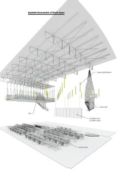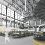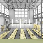 The renovation had to maintain the ideals of Heffernan’s building as a pedagogical example, yet accommodate additional programmed space and meet current building standards. Besides the high-bay volume, the space to be occupied by the school includes flanking bands of more conventional two-story spaces.
