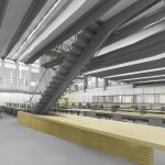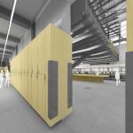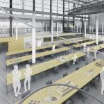 In order to allow repurposing of spaces, the team developed a system of movable tables and drawer units for the students. Simple construction of these components uses sustainably harvested birch plywood, which also appears on applied surfaces and in stairwell safety barriers throughout the project. Each student also has a fixed locker in which to store belongings. Juror Dan Rockhill praised the whole project as “very minimal, economical, intelligent.”