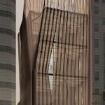 It is fitting that the new headquarters for Obzee, a company that owns several fashion labels, is so influenced by the clothes designed within. Located on an urban infill site in Seoul, Korea, the building is an eight-story tower wrapped in its own piece of clothing: a pleated and perforated metal skin. The gathers and drape of the skin are heavily influenced by the architects’ research into tailoring, down to the diamond-shaped perforations that resemble cutouts from a dress pattern and a supporting structure that is reminiscent in both form and principle to a crinoline. This support structure is anchored to a glass curtain wall that encloses the concrete structure, which retains a diamond pattern in the system of beams that support ascending floors. The fluidity of the skin belies the rectilinear form of the building underneath, a contrast that intrigued the jury. Julie Snow commented, “The interesting thing about the box itself is how it’s structured, and the fact that the pleated exterior fabric works against those forms. That’s probably the strength of the project—instead of it taking this sort of formal shaping, it took a structural shaping.” Juror Thomas Phifer echoed her sentiment: “The way the volume finally behind all of these elaborate screens and structures is simple and doesn’t respond to the different characteristics makes the skin object like and special, and I think it actually makes it stronger.”