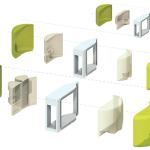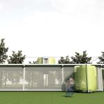 Another level of customization comes from panels cladding the aluminum frame, which are cut with a laser or water jet to provide shade and privacy. The panels can be made in a variety of materials, including wood and glass. The juxtaposition of the panelized structure and the nodes intrigued juror Thomas Phifer: “The most interesting thing to me is this spatial diversity of living in the glass building and then having a completely different spatial circumstance inside these pods.”