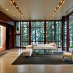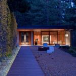 “Two sides of the buildings are solid, so on approach you’re not seeing much, but when you come in there’s a lot of exposure to the view and the room across the way,” Ashley says. “You can control the lights from both buildings.” A judge noted that the project “blends the formality of an edge with the natural world beyond. It applies order to nature without feeling forced.”