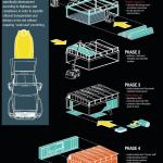 Designed for the Los Angeles Unified School District, Building Blocks is a prefabricated, modular construction system that seeks to replace the district’s fleet of deteriorating portable classroom units. But it can also be deployed across a series of similarly scaled typologies. The system—which juror Gordon Gill called “quite clever,” and juror Martina Decker noted “seemed relatively easy to use and easy to handle”—includes in-slab radiant heating and cooling, and fiberglass-laminated SIP walls with operable windows, supported by steel moment framing. The crowning glory is a fiberglass roof module that contains integrated lighting and an operable baffle that allows for daylighting and natural ventilation in the classroom.