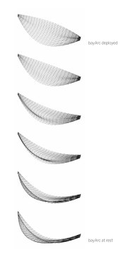 The flexible structure of cables and a waterproof membrane would unfold and rise, opening like a parachute filled by the water trying to squeeze from the ocean into the bay. Like a floating dam, its top edge would break the water surface, by approximately 1.5 meters, and keep most of the flow out. Once the surge dies down the structure would deflate, folding back onto the seafloor.
