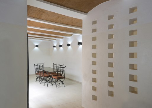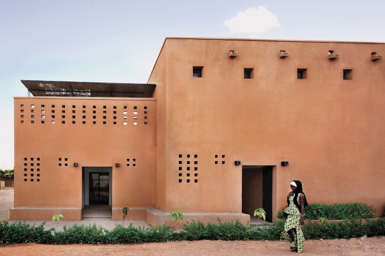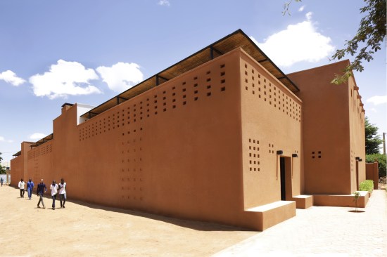 Eschewing cement and steel, the structure is made from locally sourced and produced unfired earth bricks, which are formed with a manual block press. Not only are the bricks cheaper and more sustainable than imported materials, but they create work for Niamey’s skilled laborers. Using a small number of reinforced concrete supports, the building rises two stories—in a city of mostly one-story homes—with a solidity that surprised even native Niamey residents who came for a tour. “People weren’t willing to believe that a building made with earth could be that sturdy,” Kamara says.