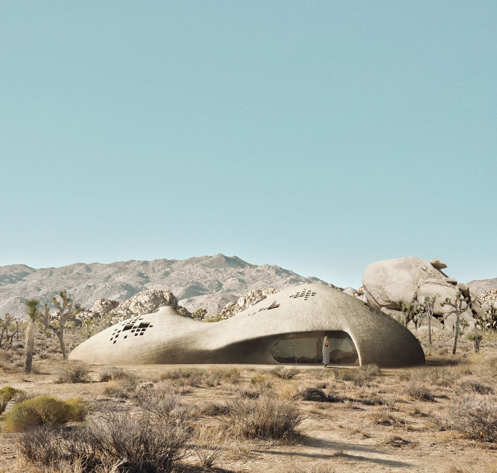 After years of researching the high-density spray foam’s structural capability, the firm is embarking on its first building using the material. The single-family house in the quirky and remote desert community of Pioneertown, Calif., will be a curvaceous, gourd-like mound with globular interior spaces and hardly a straight line to be found. The spray foam, installed in one continuous application, in combination with a cage of steel reinforcing bars, will become the house’s foundation, walls, and roof.