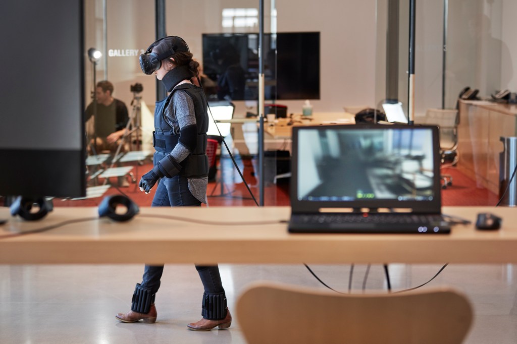 The first iteration of the Empathy Effect project focuses on advanced age and the ailments that come with it. It pairs a VR headset with a body suit that hinders arm and leg movements; the headset has digital filters that mimic vision that is impaired by cataracts, glaucoma, or macular degeneration.