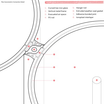 The team has been working on new iterations—for example, placing a photovoltaic rod in the middle of each tube, which receives enough focused, concentrated solar energy from the convex surface of the glass around it to generate electricity, the amount of which is being studied—and SOM has patented the design. “Taken together, it’s quite a remarkable thing,” Haney says. Aside from its technical qualities, “it just looks really cool,” he says. “You can get full daylight, along with the insulative capabilities of a solid wall.”