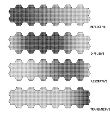“By selecting a very dark glass, we were able to amplify the play of reflection and pattern overlap to make a visual register of the formal modifications that in turn generated the acoustic gradients,” Newell says.
