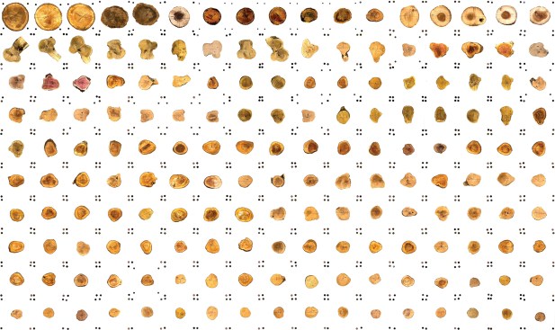 The team developed a low-tech, parametric digital imaging workflow to photograph and trace the cookies in 2D and then translate them into 3D models. Cookies are not cut in a fixed size, but rather logs in a range of diameters can be used, and the parametric model is able to adapt the vault design to cookies of any shape or size. The thickness of cookies was standardizedâ3, 4, and 5 inchesâfor ease of translation into the digital model and for fabrication.