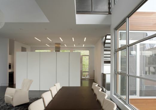 bathroom and kitchen plumbing fittings:Dornbracht Americas; bathroom plumbing fixtures:Grohe America; bathroom and kitchen cabinets:Poliform USA; brick/masonry products:Northfield Block Co.; dishwasher, oven:Miele; entry and patio doors, windows:Custom Window Co.; garage doors:Overhead Door Corp.; hardware:Schlage Lock Co.; hvac equipment:Carrier Corp.; insulation:Owens Corning; lighting fixtures:BEGA/US, Juno Lighting; paints/stains:The Sherwin-Williams Co.; refrigerator:Sub-Zero; security system:ADT Security Services