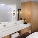 resources: bathroom fittings: Hudson Reed; bathroom fixtures: DuPont (Corian), Duravit USA, WETSTYLE; cabinets: Arclinea Boston; countertops: Cumar; dishwasher and oven: Miele; kitchen fittings and fixtures: Blanco; lighting fixtures: Cooper Lighting (Halo), LBL Lighting, Progress Lighting; paints/stains/wall finishes: Benjamin Moore & Co.; refrigerator: Sub-Zero