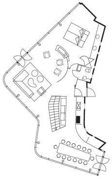 Architects Pekka Helin and Mariitta Helineva came to the rescue, placing a galley-style kitchen near the center of the boomerang-shaped floor plan. “It has a different hierarchy than kitchens in our other residences,” Helineva acknowledges, but that’s what the clients wanted—a kitchen that “fades away in the background.”