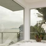 Because the bathroom backs up to the garage, natural light is restricted on two sides. That limitation—plus the area’s notoriously foggy mornings—made bright, reflective surfaces a must. A mirrored wall above the vanity helps reflect views and daylight into the space. And sandblasted glass enclosures for the shower and adjacent toilet give the owners privacy where they need it without cutting off light.