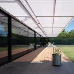 This addition to a 1950s ranch house encloses more space outdoors than indoors. Devoting the existing structure to a garage, four bedrooms, and a playroom, architects and owners Maria Salenger, AIA, and Matthew Salenger designed a separate kitchen/living/dining structure that also is the studio for their three-person firm. Joined by covered walkways and polycarbonate-clad garden walls, the two buildings frame a green courtyard that serves as a flexible outdoor living room. The configuration is novel in this suburban milieu, but the Salengers’ execution and detailing—make it eminently practical.