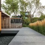 Glass walls, slatted pergolas, and diagonal bracing read as faceted layers in the open-plan house, which is clad in maintenance-free Richlite and cedar, like the surrounding homes. “It’s a raggedy Modernism, almost like an improvisation on a structure,” a judge said. “It’s rambling but pure in plan.”