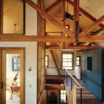 Teague’s approach to architecture reflected the openness of the times. Through his work at Yale, then under the deanship of Charles Moore, “I got a sense that architecture could work in a social context as well as a physical context.” The school design grew out of extensive interviews with students, parents, and teachers. Based on an interactive model of education—Teague used garage doors to open classrooms to a central courtyard—and inspiration from Italian Renaissance architect Francesco di Giorgio, the building made novel use of log construction. It was an immediate success (and an enduring one; some 40 years later, it remains the home of a thriving community institution). Further educational projects were not forthcoming, Teague says, “but we did have wonderful [residential] clients who liked this crazy idea we had with logs—the economy, the exuberance.” While most of his colleagues drifted away after the project was finished, Teague stayed on, adopting the SLOW Construction name for his own design/build firm.