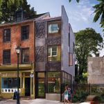 To satisfy the neighborhood association and the Philadelphia Historical Commission, the duo used laser-cut Cor-Ten steel on the façade and specified a silver-black brick for the side and rear elevations. “The idea was that the materials would relate to each other and to the old building but still differentiate themselves,” Rasmussen explains.