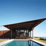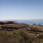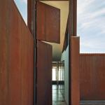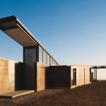 And what a destination it is. Set in the fire-prone Toro Canyon, the house responds to big views and extreme environmental conditions. Its hardscrabble concrete and steel blend into the land, and its form harvests the elements—sun and wind—that create potential hazards. The overhanging roof provides shade and sheds water for a future cistern, its tail kicking up toward the view and prevailing breezes. “That’s where the 18-foot Dutch door comes in,” explains Tom Kundig, FAIA. “The upper portion can be opened, allowing breezes to flow through while maintaining security. Operating both together opens the spine dramatically for the entry sequence, building to the main box that strings the main rooms along the edge of the bluff.”
