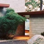 The house's simplicity and massing, shown here in the entry court, recall other late Usonian houses.