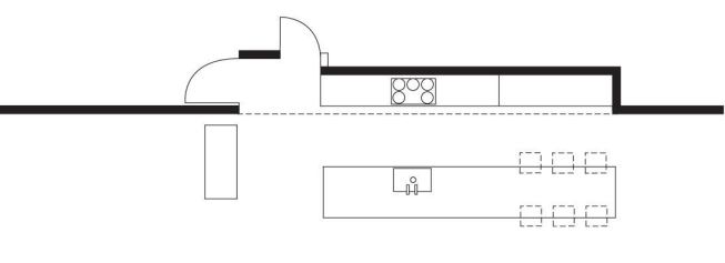 The island—a folded plane of figured Ice Flower soapstone that wraps a bank of laminate cabinets—offers a dramatic stage for entertaining at home, and its 20-foot length accommodates ensemble productions. “You can have three or four people helping you prepare a meal if you want,” Walker observes. But the island’s scale doesn’t overwhelm its setting. “It’s a big thing in a big space, and it allows the kitchen to work very informally in this loft setting.”