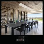 Presented with a dense program and pristine setting, Paul Masi, AIA, LEED AP, practiced the art of subtraction in this house, sandwiched between a pond and the Atlantic Ocean. Sections of the long, barnlike building are pared away, establishing a clear formal plan and visual bridges from one side of the site to the other. “As the big idea trickled down, we used CNC and waterjet fabrication to further simplify the design,” Masi says. Corian in the kitchen and baths was CNC-milled, and a Cor-Ten retaining wall at the entrance cantilevers upward to become a waterjet-cut handrail.