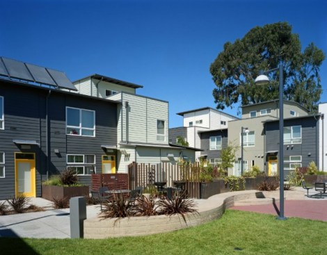 Tassafaronga Village is a new neighborhood bringing a diversity of affordable housing to an underserved Oakland area, while repairing the deteriorated neighborhood fabric. The 7.5-acre brownfield infill site—previously home to decrepit public housing, an abandoned factory, and unused train tracks—was an isolated and unhealthy environment.