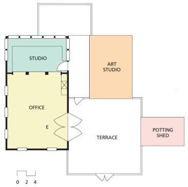 A small horse barn was the basis for this art studio conversion, which provides a bright, functional, and inspiring workspace replete with reminders of its former life. The original building was the largest in a cluster of farm outbuildings, âMama Bear, Papa Bear, and Baby Bear,â says architect Mark Hutker. He and project architect Gerrit Frase maintained the renovated building’s orientation toward its partners, filling its wide barn-door opening with a set of custom Dutch doors that open onto a shared courtyard. Charged with maintaining the building’s original character while adding insulation, plumbing, and electrical service, the project represents what Hutker calls âstealth architecture. We insulated the whole thing from the outside, so the âbarniness’ could remain.â
