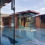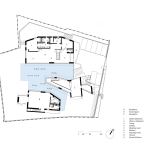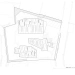 Steven Holl’s Daeyang Gallery and House on a residential hillside outside of Seoul, South Korea, draws inspiration from composer Istvan Anhalt’s 1967 sketch of three fragments of a musical score entitled “Symphony of Modules.” In its built form, Holl’s 10,703-square-foot gallery and house comprises three distinct pavilions—one each for the actual residence, an entry hall, and an event space—all on top of a gallery volume that unifies the structure. The pavilion volumes are tied together by a thin film of water in the form of a shallow reflecting pool on the gallery roof; rectangular skylights under the water allow light to penetrate down to the gallery’s interiors. The datum of the reflecting pool is also evident from the entry gate, with grade-level bamboo-formed concrete walls, which contrast with the treated copper cladding of the pavilions above. Thin skylights in the pavilions’ ceilings echo those in the gallery below, and the charcoal-stained wood interiors in the pavilions, combined with full-height glazing, add light and warmth to the residence and reception areas.