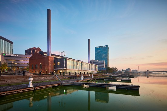 Completed in 2017, the ProMedica Headquarters by HKS Architects covers 231,000 square feet in Toledo, Ohio. The adaptive reuse project provided a new headquarters for the health care nonprofit, ensuring a focus on the health and well-being of each employee through the use of natural materials, biomimicry design strategies, and by providing ample access to outdoor spaces. Given the firm’s sensitivity to health care–focused environments, HKS has been studying how architecture might evolve in a post-COVID-19-vaccine world. Read more about how the global firm predicts that multifamily residential architecture might evolve in “Post-Vaccine Multifamily Residential Architecture,” one of six building typologies featured in ARCHITECT’s 2021 “What’s Next” feature on post-vaccine architecture.