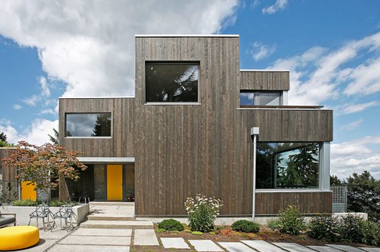 “This residence is an ultra energy-efficient home built on a steep slope lot with sweeping views of Lake Washington and the Cascade Mountains. Sustainable site development strategies, efficient building systems, and a high performance envelope helped Madrona Passive House achieve the world’s most demanding building energy standard.”