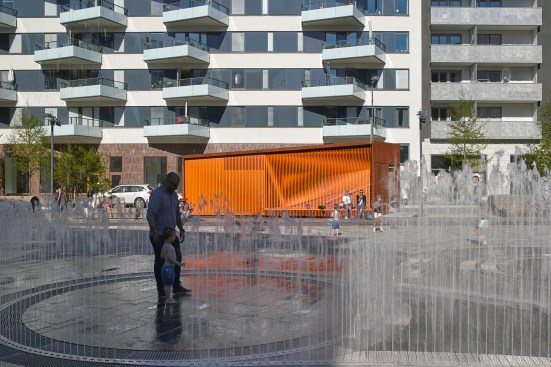 The Technical Building, designed by U.D. Urban Design and Anders Ohlin, which houses both an electrical substation as well as pumps for a fountain in Norra DjurgĂĄrden