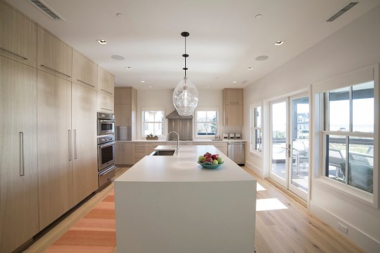 They decided to rebuild using resilient and sustainable techniques that would ensure that their new home would never meet the same fate. Designed by local architect Bill Heine and built by Westhampton Beach, N.Y.-based Coastal Management, their new 3,600-square-feet LEED-Platinum beach house was completed in 2015. The state-of-the-art home was the first to register to take advantage of Southhampton’s new property tax exemption for LEED-certified homes, says the home’s sustainability consultant, Kim Erle of Sunset Green Home.
