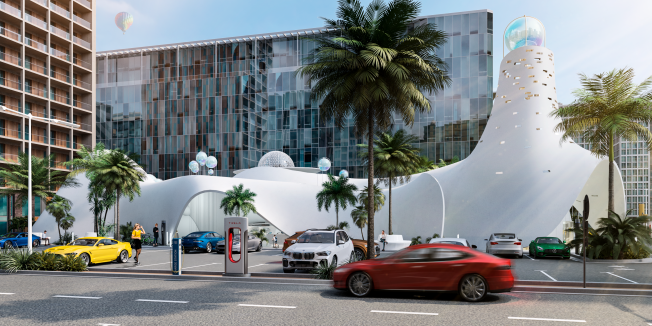 “The tower’s structural solution is the ‘finite’ frame system—a biodegradable structure made from desert sand—a resource that is still as strong as concrete and nontoxic.”