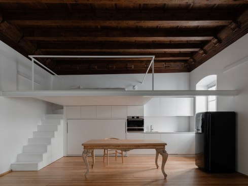 “The apartment is located in the old town of Sondrio, inside a building dating back to the 17th century. A volume altered over the years and then abandoned. The intervention aimed to bring everything to its ancient splendor, affecting as little as possible the feeling of welcome and beauty transmitted during the first visit.”