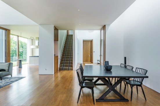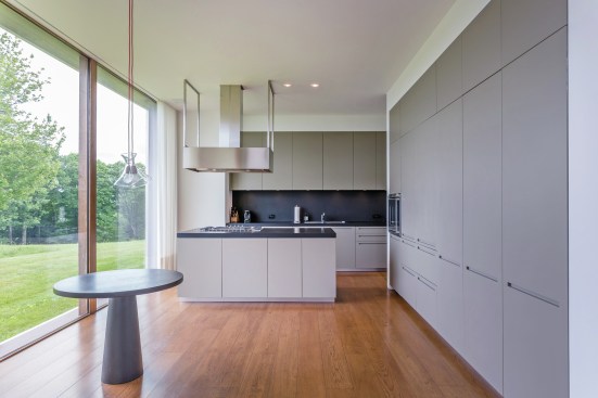 For the interior, Ai and HFF divided the house into a series of rooms with differing widths and heights with large windows, creating a range of exhibition spaces connected by smaller passages. In a nod to 20th century American architecture, the team added three large fireplaces. The kitchen is outfitted by Italian kitchen and bathroom manufacturer Boffi and features a large window that looks out to the surrounding countryside where Ai and HFF installed a rectangular pool.