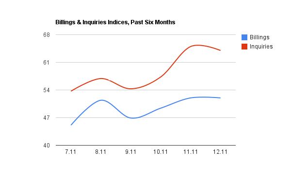 In the AIA’s press release, AIA chief economist Kermit Baker says: “We saw nearly identical conditions in November and December of 2010 only to see momentum sputter and billings fall into negative territory as we moved through 2011, so it’s too early to be sure that we are in a full recovery mode. Nevertheless, this is very good news for the design and construction industry and it’s entirely possible conditions will slowly continue to improve as the year progresses.”
