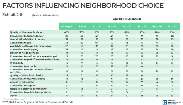 When we consider a move from the Gen X population, it’s important to know what matters most to them. A survey by the National Association of Realtors highlights the generation’s desire for a nice neighborhood within a reasonable distance to employment centers and relatively large but affordable homes.