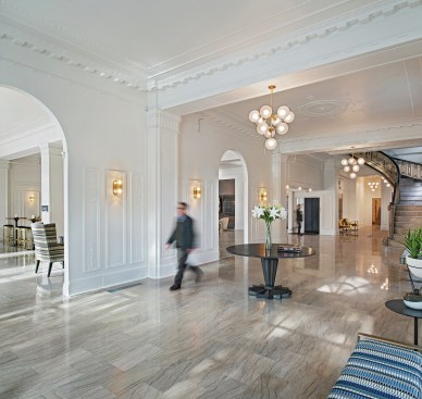 “In addition to restoration and upgrades to the building’s facade and exterior, the team collaborated to gut the interior and refinish all spaces from the first floor common areas to corridors and residential units. The 76,300 SF, $18.8 million project features 97 micro-, one-and two-bedroom units ranging from 224 to 810 SF. With a program specific to catering to the amenity needs of tenants, HAA activated previously underutilized areas to provide resources such as a fitness/wellness room and a laundry room/lounge, and the former tenant laundry room was transformed into the leasing/manager’s office and concierge.”